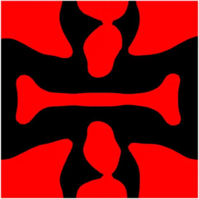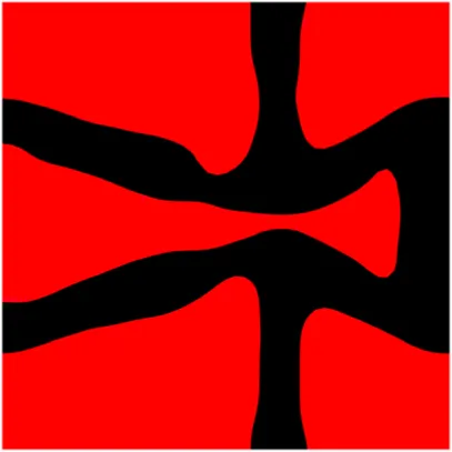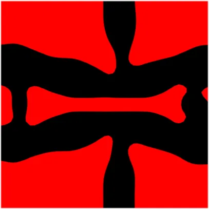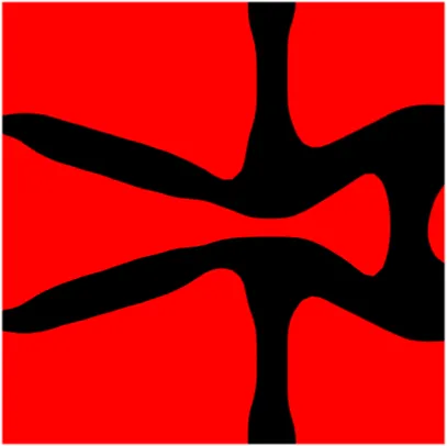 LSM implicitly defines the structural boundary as the zero-level set of a higher-dimensional scalar function Φ (x). For example, a two-dimensional (2D) design, given in Figure 3, is defined bywhere x is a point in space D. Ω and ∂Ω are the design domain and its boundary, respectively. The dynamic motion of the level set function then drives the topological shape changes of the structure. Differentiating zero level set function with respect to a pseudo time t leads to motion of interface as