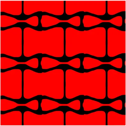 The effective elasticity tensor DHijkl of the microstructure is assessed by the homogenization method as:where Y is the micro design domain and denotes one unit cell of the stent, and |Y| is the area of the unit cell. i, j, k, l = 1, 2. Dpqrs is the elasticity tensor of the solid material in the design domain. is the test unit strain field, where (1,0,0)T, (0,1,0)T and (0,0,1)T are used in 2D models. is the locally varying strain fields and defined by: