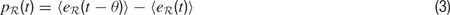 In order to describe this second possibility, we need to introduce a few formal notations and precisions about the computational architecture that will embed intrinsic motivation. Let us denote a sensorimotor situation with the state vector x(t) (e.g., a given action performed in a given context), and its outcome with y(t) (e.g., the perceptual consequence of this action). Let us call M a prediction system trying to model this function, producing for any x(t) a prediction y′(t). Once the actual evolution y′(t) is known, the error ex(t) = | y(t) - y′(t) in prediction can be computed and used as a feedback to improve the performances of M. At this stage, no assumption is made regarding the kind of prediction system used in M. It could be for instance a linear predictor, a neural network or any other prediction method currently used in machine learning. Within this framework, it is possible to imagine a first manner to compute a meaningful measure of learning progress. Indeed, one could compute a measure of learning progress px(t) for every single sensorimotor situation x through the monitoring of its associated prediction errors in the past, for example with the formula: