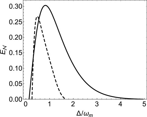 Finally, we investigate the entanglement between the oscillator and cavity mode. By calculating the correlation matrix, we can obtain the logarithmic negativity