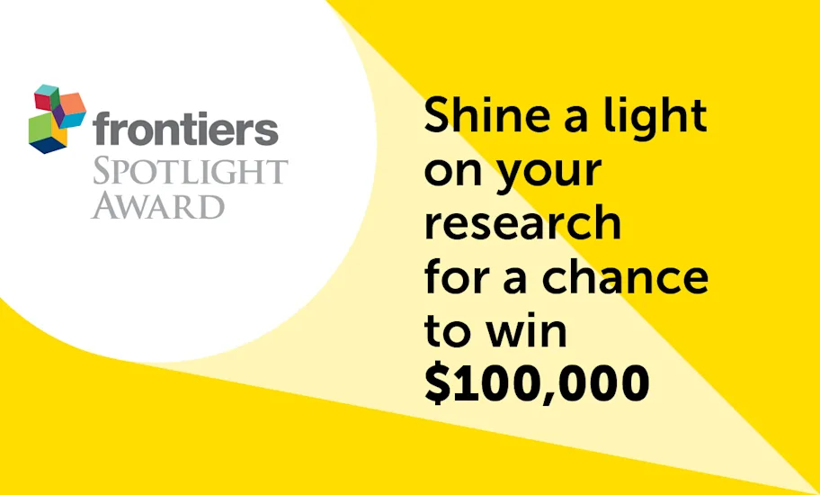 Having pioneered Article Level Metrics and Author Impact Metrics, Frontiers captures and monitors the global impact and discussion that each Research Topic triggers. To recognize the most active, collaborative and engaging Research Topic across the entire Frontiers community, we have established the Frontiers Spotlight Award. The award of US$100,000 will enable the winning community to organize a scientific conference around the Topic to further deepen collaborations and stimulate even more community engagement. The winners of the Frontiers Spotlight Award will be chosen by the scientific community based on analytics compiled from our suite of Impact Metrics and will recognize both collaboration at an international scale as well as excellence of contributions.