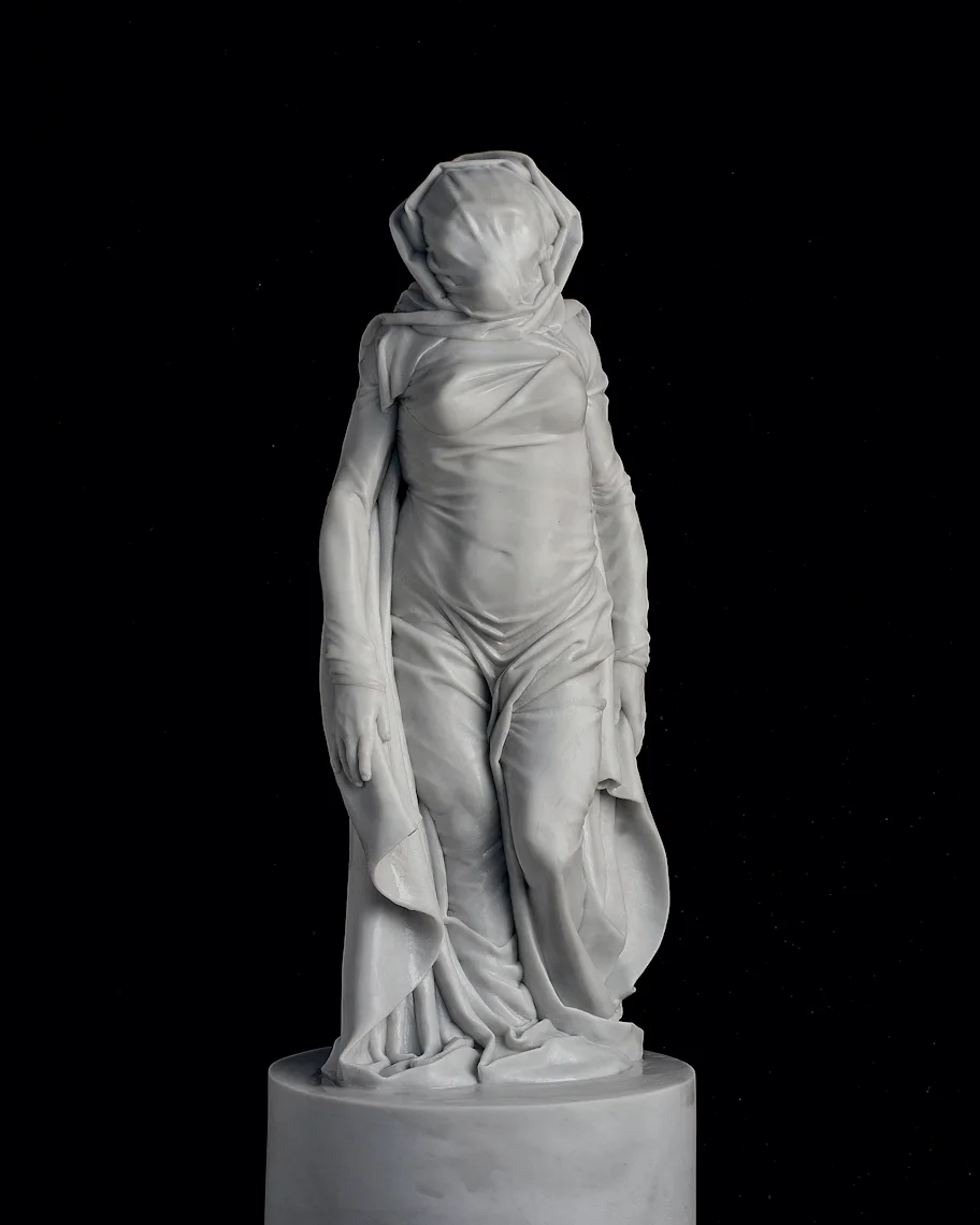 A marble sculpture titled “Santa Lucia” carved in 2019 following the body-composition of the intuitive reconstruction of Lucy from 2018 shown above. Image credit: R. Campbell, G. Vinas, M. Henneberg, R. Diogo