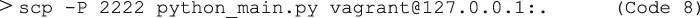 | Code 8 | > scp -P 2222 python_main.py vagrant@127.0.0.1:. |