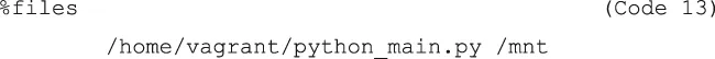 | Code 13 | %files /home/vagrant/python_main.py /mnt |