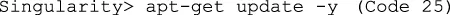 | Code 25 | Singularity> apt-get update -y |