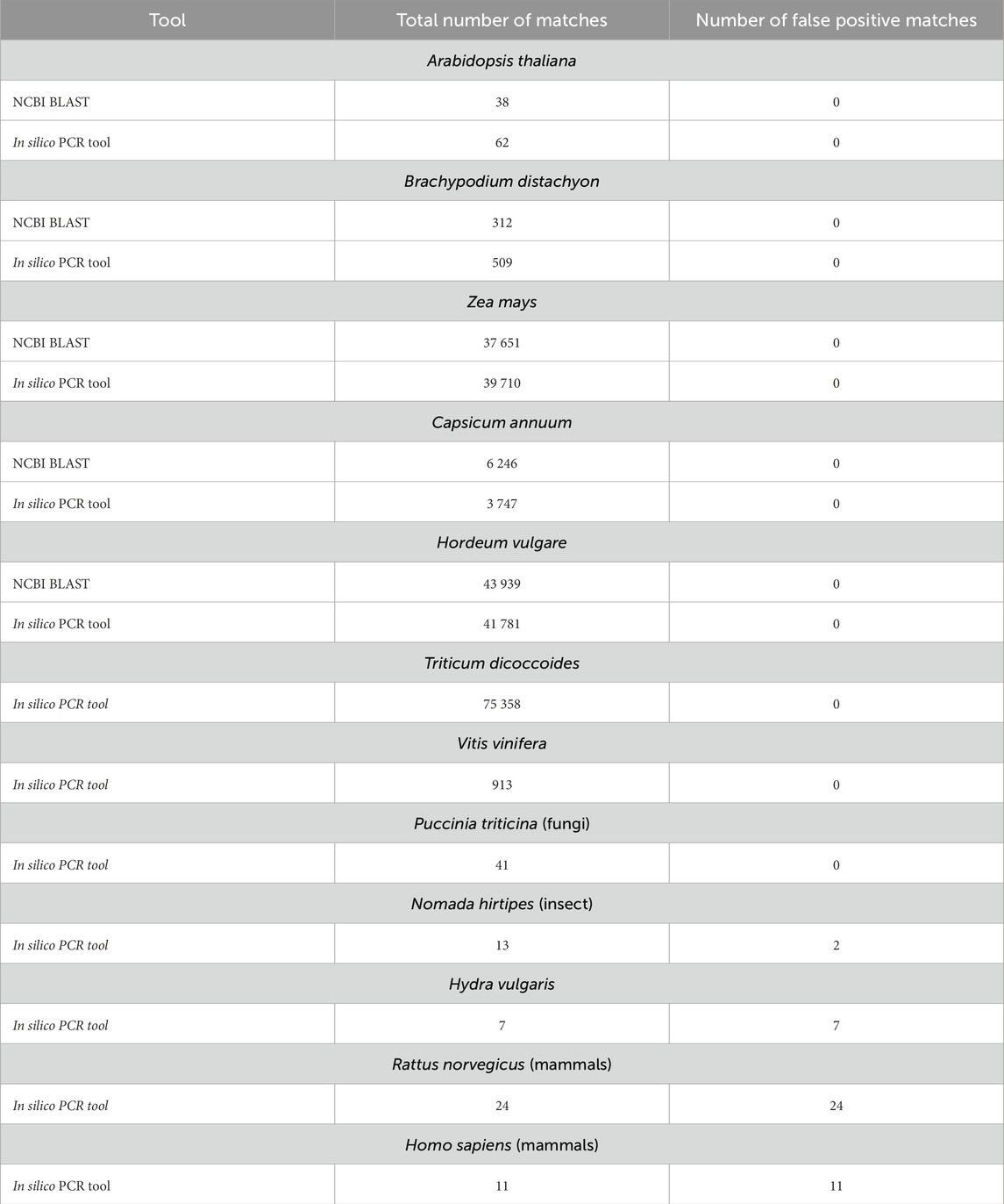 TABLE S1Comparison of in silico PCR tool with amplicon analysis (Number of Matches) from NCBI BLAST.