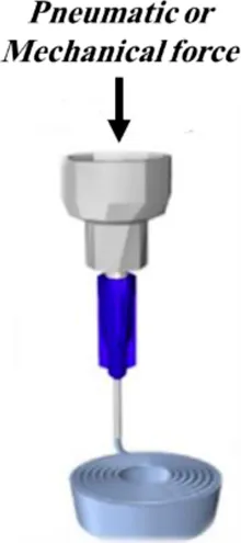 | Extrusion-based bioprinting | Pneumatic, mechanical or solenoid driven mechanism | Adv.: High cell density, wide range of printable biomaterials | Alginate, methylcellulose, PCL, gelatin | ![]() | (Peloso et al., 2018; Smink and Paul de Vos., 2018; Duin et al., 2019; aewook; Kim et al., 2019b; Y.; Zhu et al., 2020) |
