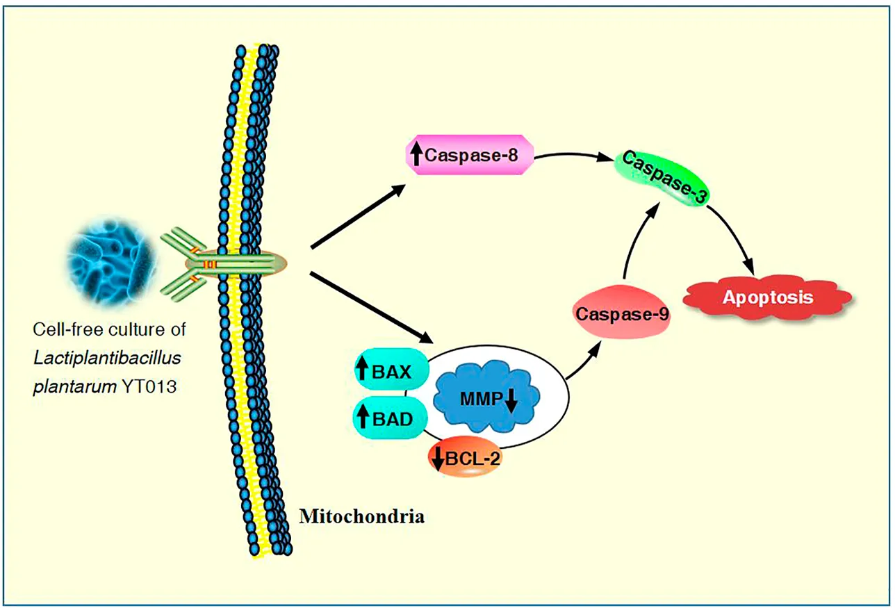 The overall mechanisms for the induction of apoptosis in AGS cells by the CCS2 prepared from the selected L. plantarum YT013 were summarized as the picture.