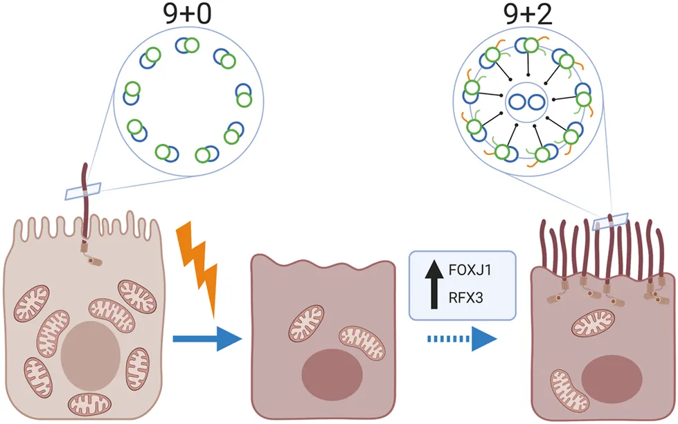 motile cilia, multiciliated cells, multiciliated differentiation, kidney injury and repair, interstitial fibrosis and tubular atrophy, proximal tubular cells, dedifferentiated