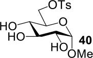 The attempt to abtain methyl 2-thio-, 4-thio- and 2, 4-thio-β-D-galactosides starting from methyl 3,6-di-OAc-β-manopyranoside 33 showed better results (Scheme 5). Substitution of 34 (the triflated product of 33) with 5.0 equiv of TBASAc in MeCN at room temperature led to a 84% yield of methyl 2,4-di-thioacetate-galactoside 35. Unexpectedly, neither intermediaite 36a (the 4-OTf of 34 substituted by thioacetate) nor intermediate 36b (the 2-OTf of 34 substituted by thioacetate) could be observed under the conditions that 1.0 equiv of TBASAc was used instead, and 35 was still obtained. Usually, 4-OTf showed higher reactivity than 2-OTf when substituted on a glycoside ring. However, the substitution of 4-OTf of 34 is disfavored due to steric hindrance of 2-OTf in this case. Once 2-OTf of 34 had been substituted by thioacetate, the substitution of 4-OTf would occur immediately due to the disappearance of the steric hindrance from 2-OTf, leading to the formation of 35. Similarly, the treatment of 34 with 1.0 equiv of TBAOAc in MeCN at room temperature mainly gave product 37. However, when this reaction was performed at 0°C, intermediate 38 was formed. Consequently, the following addition of 3 equiv of TBASAc led to 4-thioacetate galactoside 39 in 48% yield. However, the treatment of 34 with 1.0 equiv of TBASAc in MeCN at 0°C did not give intermediate 36b, but gave 35 in 38% yield. While axial triflates can be attacked directly (the antibonding orbital can be approached), the sugar ring has to adopt a different conformation to allow attack on the equatorial triflate (since the antibonding orbital is shielded by the axial substituents on the ring). Lowering the temperature thus may slow down the interconversion of the ring. Thus, the 2-OTf of 34 showed high reactivity on substitution by acetate due to the axial ttiflate leaving group. When the reaction proceeded at room temperature, the product 37 was formed immediately from the intermediate 38. However, when the reaction proceeded at 0°C, the interconversion of the sugar ring turned very slow, which thus restrained the further substitution of 4-OTf by the acetate. However, thioacetate showed much higher nucleophilicity than acetate since sulfur is a big atom and it will therefore readily have a productive overlap with the antiboding orbital. This high nucleophilicity of thioacetate flattened the difference in reactivity between 2-OTf and 4-OTf. We also proposed that a supramolecular control effect perhaps plays a key role in this process, in which an acetate ion can be accommodated at the center of the β-pyranoside face to produce an anion-carbohydrate complex (Dong et al., 2008a; Ren et al., 2014a), resulting in a higher reactivity of 2-OTf than that of 4-OTf. However, the poor or no supramolecular effect in polar solvent acetonitrile can not fully support this result.