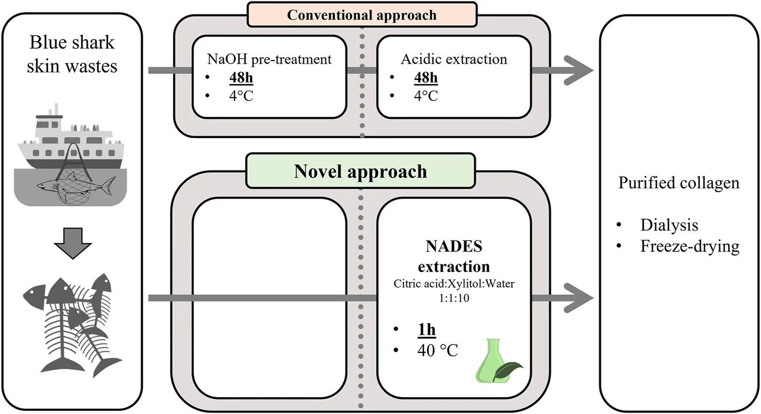 extraction process intensification, marine waste valorization, natural deep eutectic solvent (NADES), blue sharkskin collagen, extract characterization