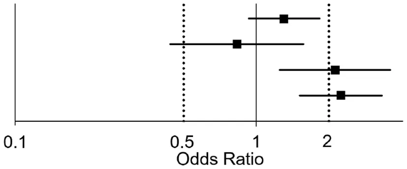 | Factor | OR | 95% CI | p | OR and 95% CI |
