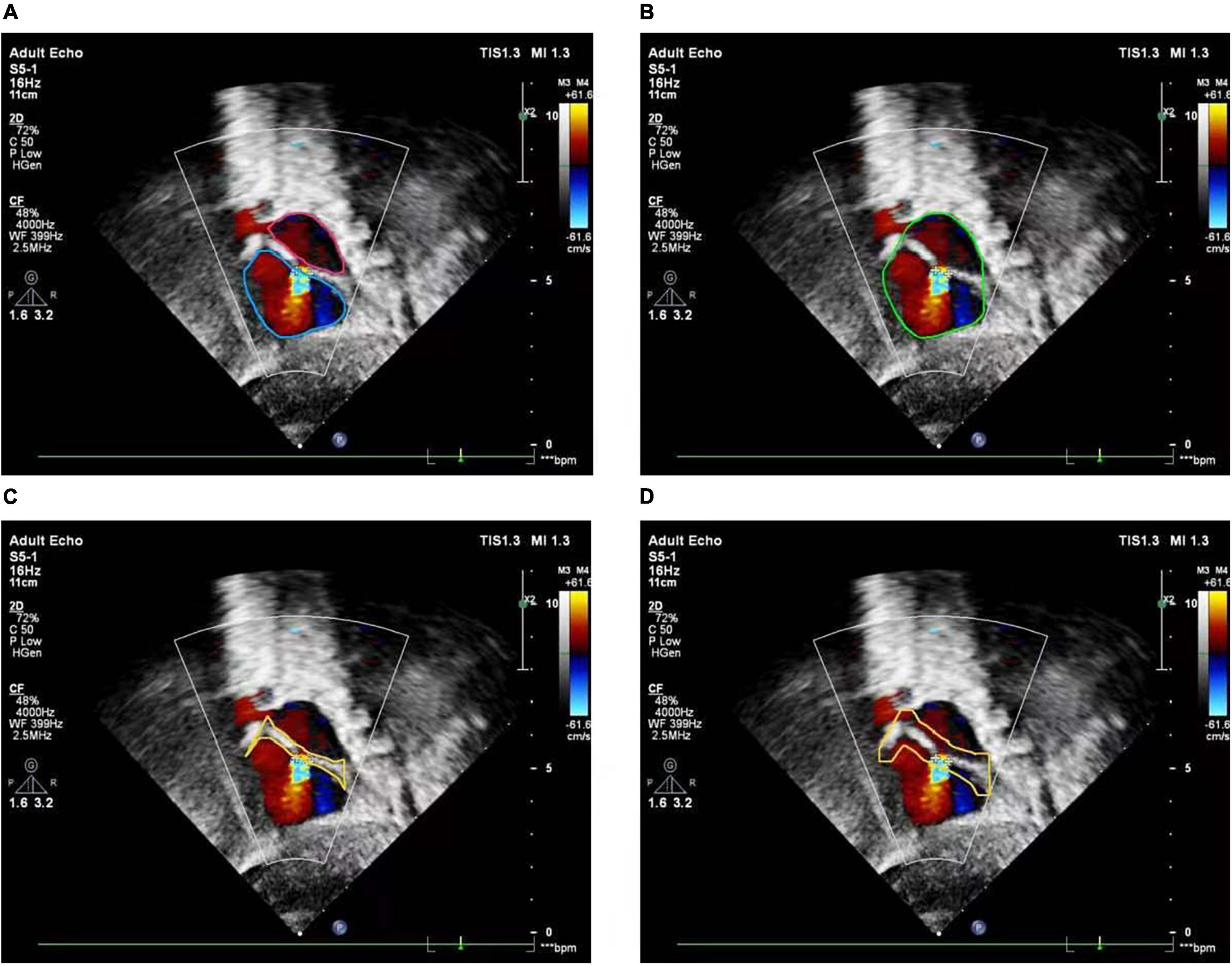 In recent years, with the development of artificial intelligence (AI) technology, deep learning methods based on convolutional neural networks (CNNs) have been applied to various medical image analysis tasks, including lesion detection, organ segmentation, and disease diagnosis. Recent studies have shown that object detection technology can be used to detect lesions of knee joint (3), thyroid (4), breast (5), pancreas (6), and other diseases. However, there are very few reports on detection of abnormal cardiac structures. The U-Net based architecture has also been widely applied in many segmentation tasks, such as liver (7, 8), lung (9), tumor segmentation (10, 11), and prostate (12, 13). U-Net has also attracted many attentions in the field of ultrasonic images such as segmentation of ovary (14), fetal head (15), and breast (16). As for CHD diagnosis, it has also been reported that AI-based automatic auscultation may improve the accuracy of CHD screening (17). However, the application of automatic auscultation in the diagnosis of CHD is limited since it cannot accurately diagnose the type of CHDs, measure the size of the defect, and, further evaluate hemodynamics (such as shunt direction).