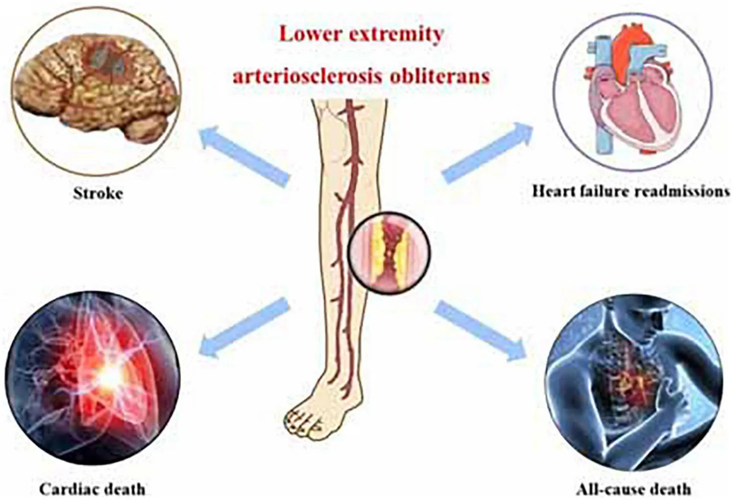 Central illustration: lower extremity arteriosclerosis obliterans as a prognostic factor for the occurrence of major cardiovascular and cerebrovascular adverse events.