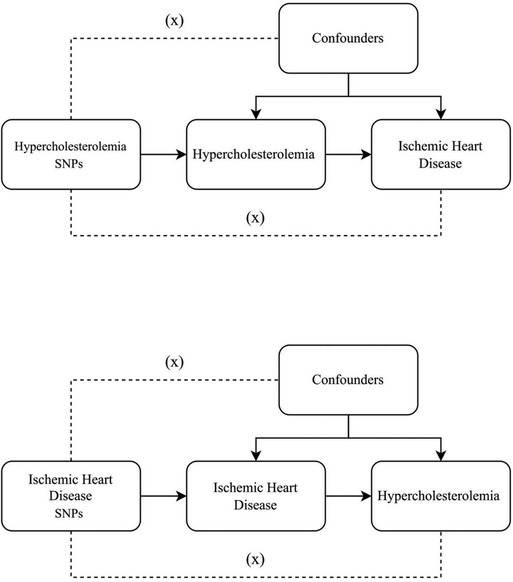 The chief contributors to hypercholesterolemia include an excessive biosynthesis of cholesterol and/or inadequate clearance of it. It's noteworthy that hypercholesterolemia amplifies the risk for developing atherosclerosis and ischemic heart disease (10). Although hypercholesterolemia's role as a significant risk factor for IHD is widely recognized (11), the suggestion of a causal relationship flowing in the opposite direction—that is, IHD potentially instigating the onset of hypercholesterolemia—presents a less conventional perspective. This concept implies a bidirectional causality between hypercholesterolemia and IHD, a process that warrants meticulous exploration. In our quest to decipher the causal link between the two, we employed an approach known as Mendelian randomization (MR). MR leverages genetic variants as instrumental variables tied to an exposure, consequently amplifying the dependability of the causal inference connecting an exposure and its subsequent outcome. This method helps to address potential challenges such as confounding factors and reverse causality (12, 13). If there exists a causal relationship between the exposure and the outcome, genetic variations influencing the exposure will likely affect the outcome as well. MR is akin to a natural randomized controlled trial, being based on Mendel's second law. This law proposes that alleles from distinct genes are assorted independently during gametogenesis. Consequently, the underlying premise of Mendelian randomization analyses is that the inheritance of a particular trait should remain independent of the inheritance of any other traits (14).