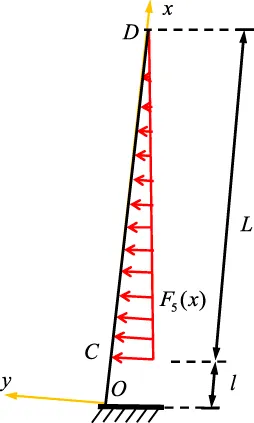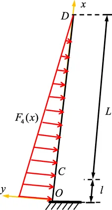 Assuming that the width of the roof on any section is a unit length, the load F4(x) at any position of the roof can be expressed as