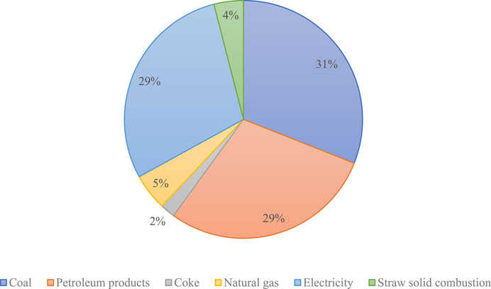 Biomass resources such as straw are abundant (Cui et al., 2021), mainly including agricultural waste, forestry waste, and livestock and poultry manure. The total amount of energy utilizable resources is equivalent to approximately 460 million tons of standard coal every year. The development of new energy in rural areas and the conversion of biomass such as crop straw and livestock manure to produce biological gas, molding fuel, and electricity can offset the emissions of fossil energy used in production and living and improve the ability of agricultural production to adapt to climate change and help carbon peak and carbon neutrality (Sun et al., 2021).