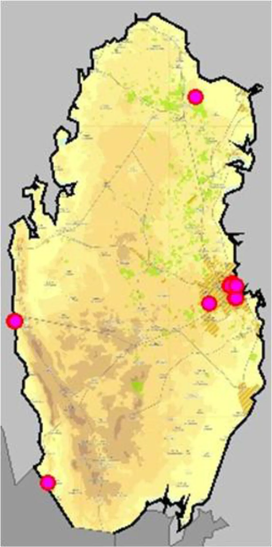 Among countries in the Arabian Peninsula, the State of Qatar can experience severe air pollution episodes in major cities (Lanouar and Al-malk, 2016). Qatar also has arid conditions and is characterized by poor soil quality and stony ground that makes up 88% of the land. Nevertheless, Qatar has a plant variety often considered rather rich in quantity and diversity (Abdel Bari, 2005). As a result, planting trees in Qatar cities can provide economic and environmental benefits for air quality improvement and other ecosystem services.