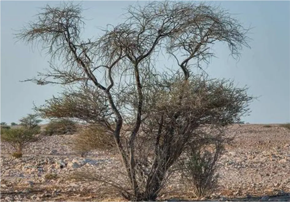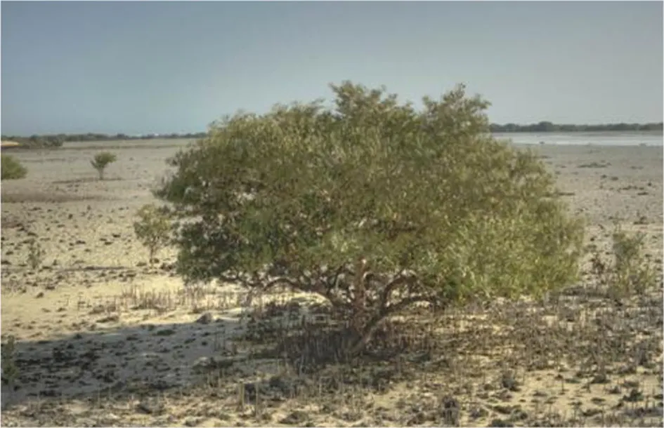 Due to the nature of the harsh climatic conditions, with high temperatures and scarce rains, the dominant plant species consist of annuals, ephemerals, and short-lived perennials, as commonly found in arid zones. These plants make up over 60% of the total flora whereas perennials represented by trees, lianes, shrubs, under shrubs, and perennial herbs are about 40% of the total number of taxa recorded (Abdel Bari, 2005). More specifically, there are seven tree species in the State of Qatar (Abdel Bari, 2005), which includes: the mangroves (a) Avicennia marina, (b) Acacia ehrenbergiana, (c) Acacia tortilis, (d) Ziziphus nummularia, (e) Ziziphus spina-christi; the lianes (f) Cocculus pendulus, and (g) Ephedra foliata (a gymnosperm) (Al Amin, 1983; Abdel Bari, 2005). In addition to the above seven naturalized species, Phoenix dactylifera grows in the Arabian Peninsula.
