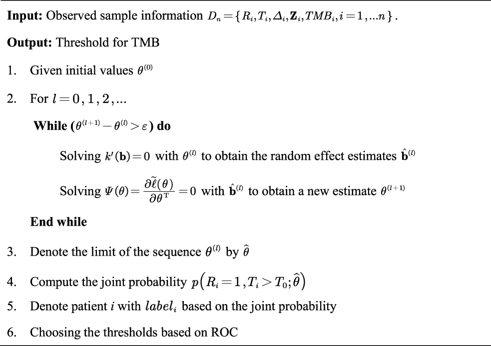 The complete TMB threshold identification procedure based on the aforementioned joint model solved by Laplace approximation is given in Algorithm 1.