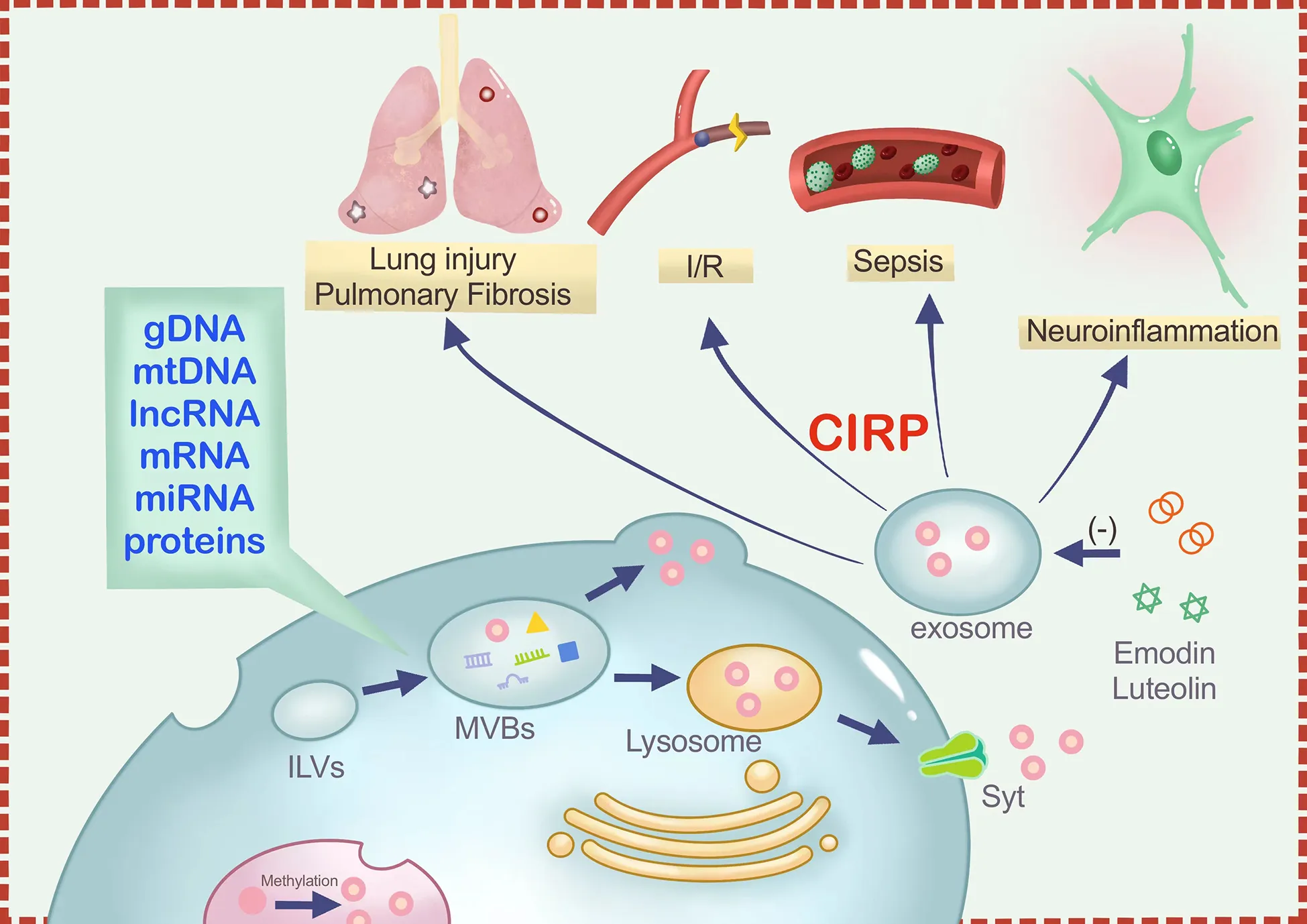 Han J, Zhang Y, Ge P, Dakal TC, Wen H, Tang S, Luo Y, Yang Q, Hua B, Zhang G, Chen H and Xu C (2023) Exosome-derived CIRP: An amplifier of inflammatory diseases. Front. Immunol. 14:1066721. doi: 10.3389/fimmu.2023.1066721