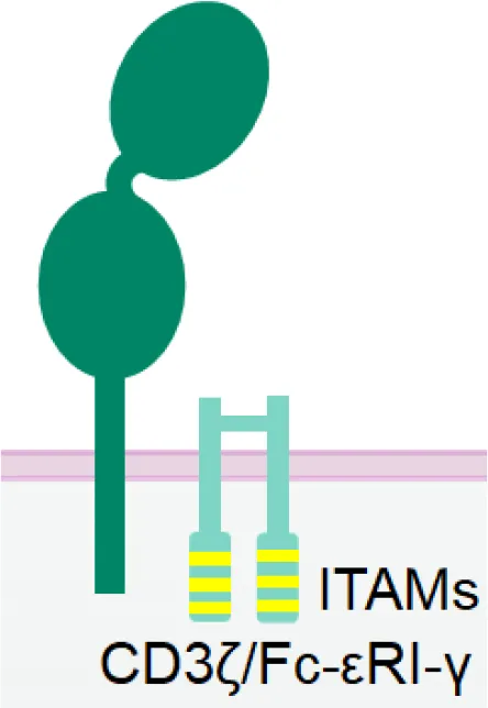 | Nkp46 | ![]() | Specific and constitutive expression in NK cells | Inducing weaker activation than CD16a |