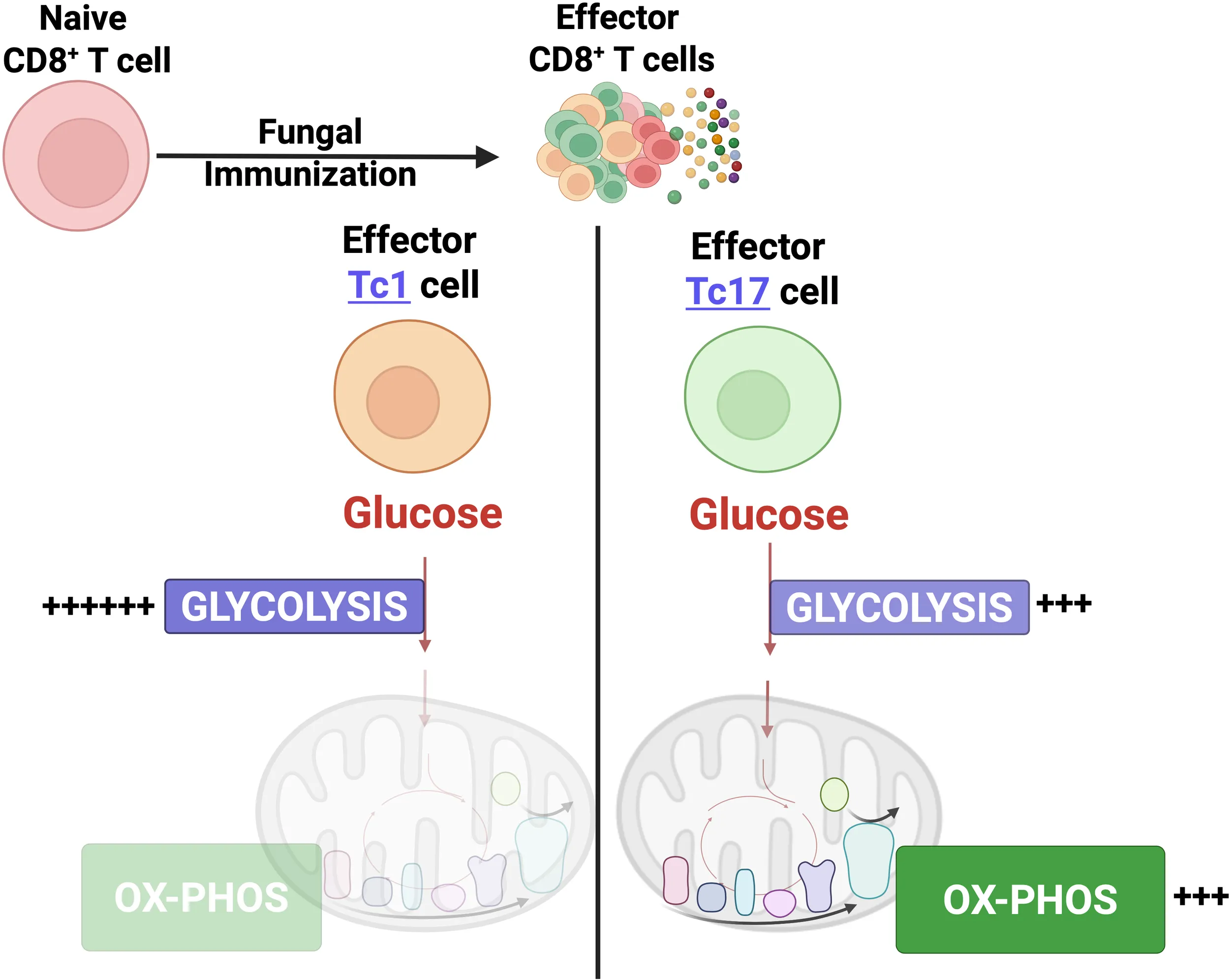 Thus, effector Tc17 cells primarily rely on glucose-driven oxidative phosphorylation.