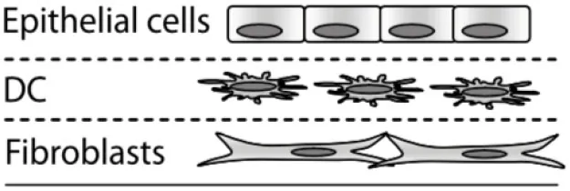 | Transwell/cell culture inserts | + Simple and robust + Compatible with standard cell culture equipment + Standard air-liquid interface protocol + No external equipment requirement (e.g., pumps or vacuum for controlled fluid or air flow) + Compatible with established readouts (e.g., microscopy, RNA analysis) + Access to cultures for direct manipulation − Limited customization − Mechanically static − Poorly quantified diffusion gradients | (189)![]() | • Direct contact signaling • Soluble factor signaling • Co-culture with various cell types (e.g., DCs, macrophages, stromal cells) • Air-liquid interface on 3D culture • Cell-permeable inserts can be used for neutrophil/immune cell migration modeling through epithelium |