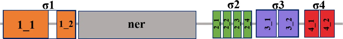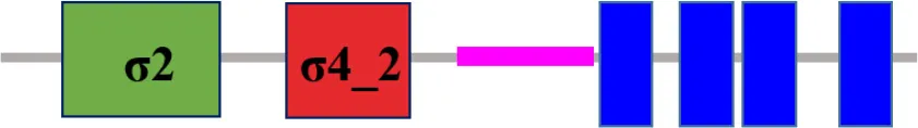 The protein sequence of σ70 family members can be divided into four regions (σ1, σ2, σ3, σ4) which are further divided into subregions on the basis of sequence conservation. A σ54 protein is divided into three regions (AID, CBD, DBD). Ner, non-essential region;