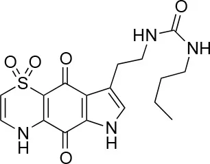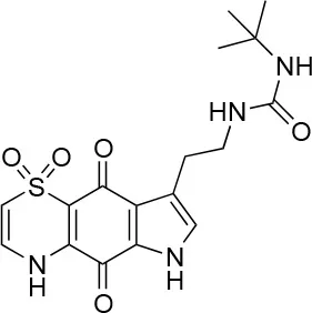 The remaining hit compounds 7, 6, 8, and 9 were all thiaplakortone compounds and 10 was also investigated due to its similar structure. Thiaplakortone A (10) and B (6) were first isolated from a Great Barrier Reef sponge Plakortis lita. These compounds have in vitro antimalarial effect at low nanomolar concentrations (Davis et al., 2013) and 10 also inhibits Trypanosoma brucei and T. cruzi, at low micromolar concentrations (Zulfiqar et al., 2017). Compound 10 is known to have moderate toxicity in mammalian cells while 6 was non-toxic (Davis et al., 2013). In this screen 6 was the most potent hit compound and was also non-toxic to HeLa cells. 10 and its synthetic analogs 7, 8, and 9 (Schwartz et al., 2015) were all toxic to HeLa cells and as Chlamydia are obligate intracellular pathogens the anti-Chlamydia effect was not possible to distinguish from the cytotoxicity. The molecular target and mode of action of thiaplakortone and analogs in parasites is not known and we can only speculate that the anti-chlamydial effect may be caused by an effect of a common eukaryotic cell target altering the function of the host cell to the disadvantage of Chlamydia. Alternatively, a specific bacterial target may also be possible given the low host cell toxicity of a few compounds.