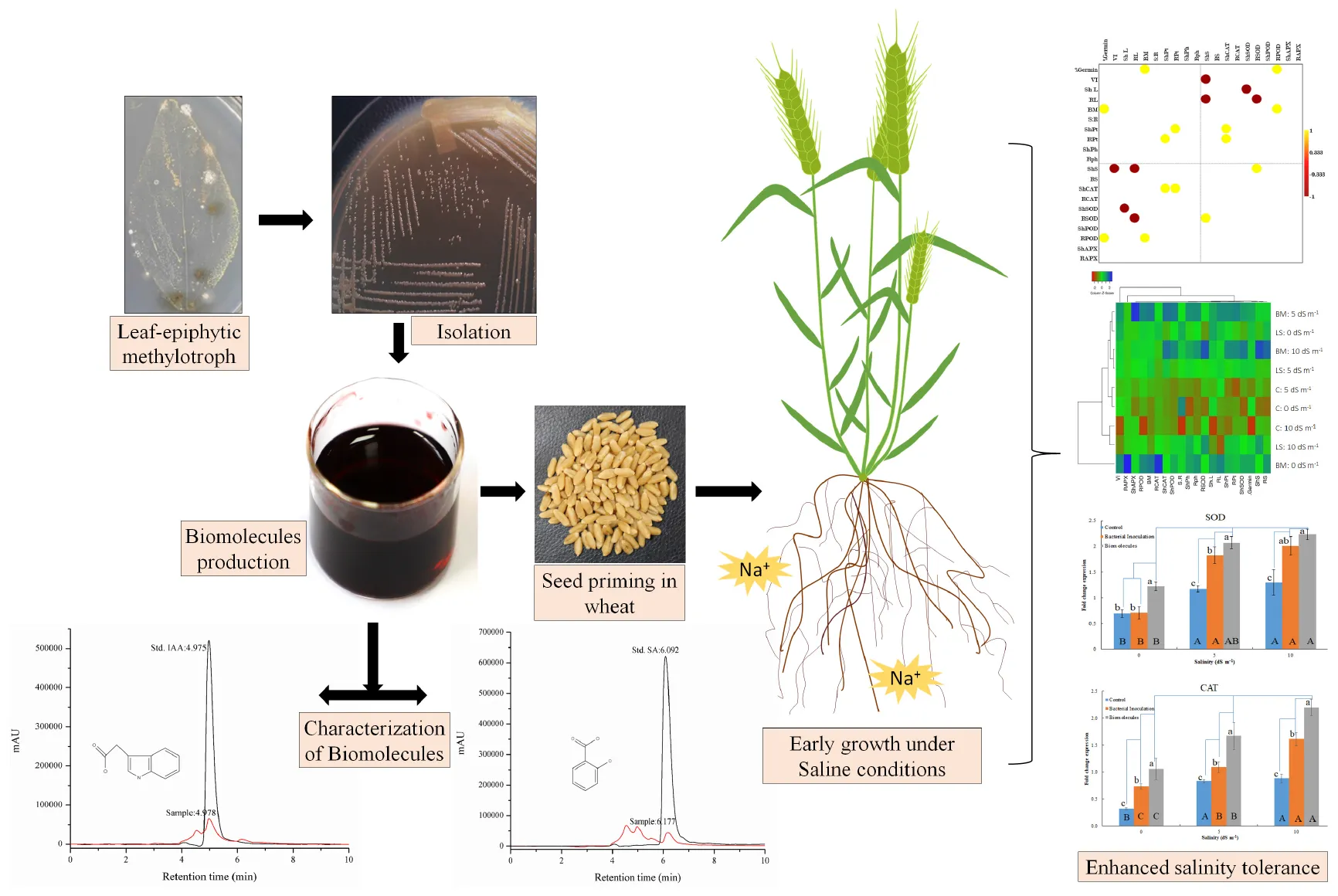 Nocardioides sp., IAA, salicylic acid, seed-priming, wheat, salinity