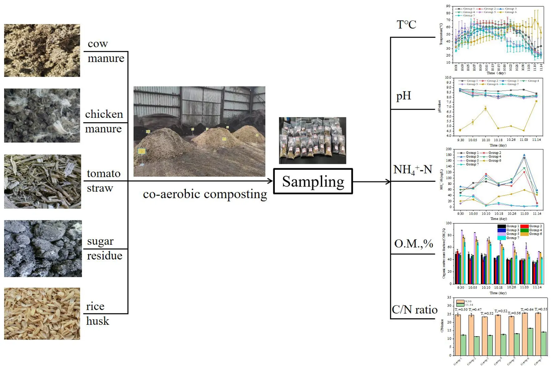 | Cow manure | Sheep manure | Mushroom pomace | Recovery materials | Rice husk | Sugar residue | Tomato straw | ||||
