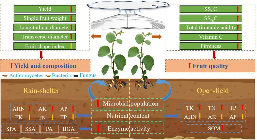 rain-shelter cultivation, fruit yield, fruit quality, rhizosphere, soil microecology, soil carbon, soil enzyme activity