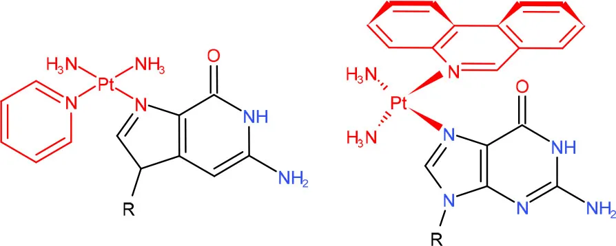 ![]() Left: Pyriplatin-dG Right: Phenanthriplatin-dG | TC-NER (Wang et al., 2018b) | Strong pausing (Wang et al., 2010, 2015; Kellinger et al., 2013) | N.D. | N.D. | N.D. | Lesion bypass with/without transcriptional mutagenesis (Kellinger et al., 2013; Wang et al., 2015) | N.D. |