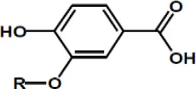 | Phenolic acids | Protocatechuic acid, R = H Vanillic acid, R = OCH3 | ![]() |