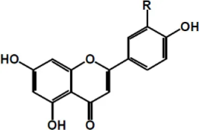| Apigenin R = H Luteolin R = OH | ![]() | |