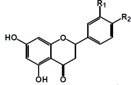 | Naringenin R1 = H, R2 = OH Hesperetin R1 = OH, R2 = OCH3 | ![]() | |
