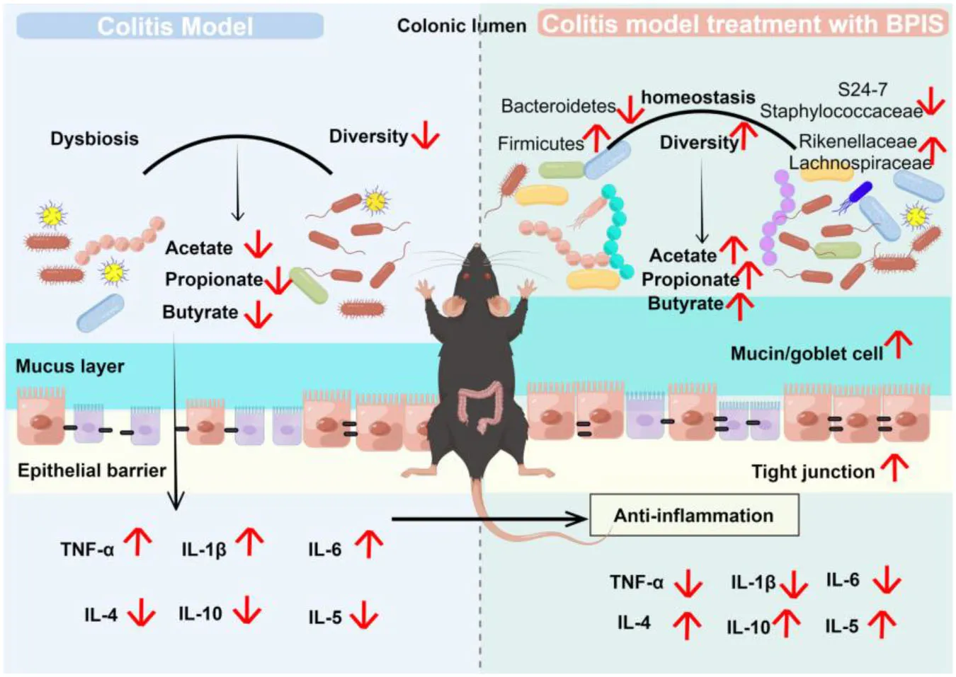BPIS ameliorate DSS-induced colitis by remodeling gut microbiome and restoring intestinal barrier.