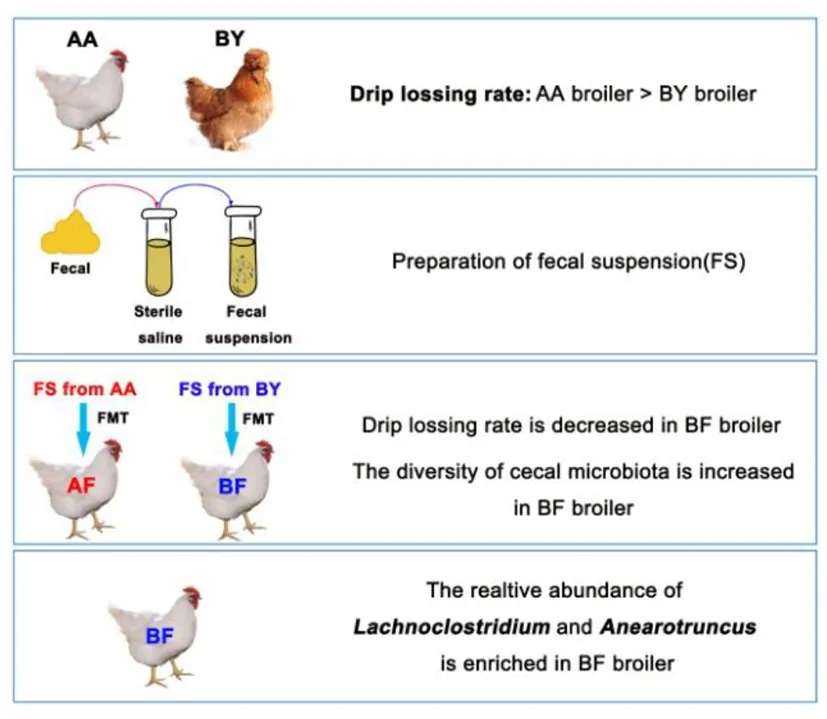 drip losing rate, intestinal microbiota, FMT, native breed, MYOD1