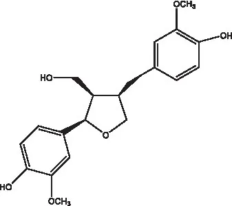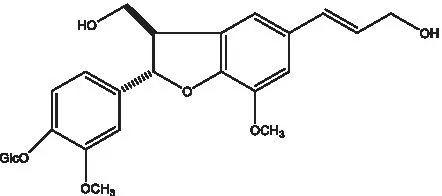 | Dehydrodiconiferyl alcohol γ’-O-β-D-glucopyranoside | ![]() | (34, 55) | Eucommin A | ![]() | (55) |