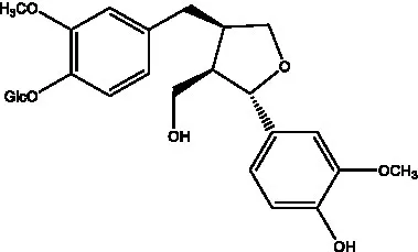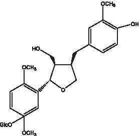 | Liriodendrin | ![]() | (55) | Lariciresinol 4′-O-β-D-glucopyranoside | ![]() | (55) |