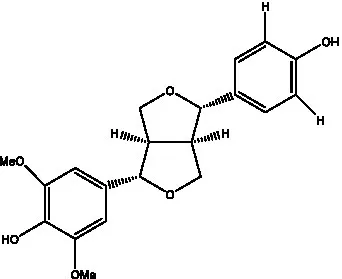 | (+)-Pinoresinol | ![]() | (56) | (+)-Pinoresinol O-β-D-glucopyranoside | ![]() | (55) |