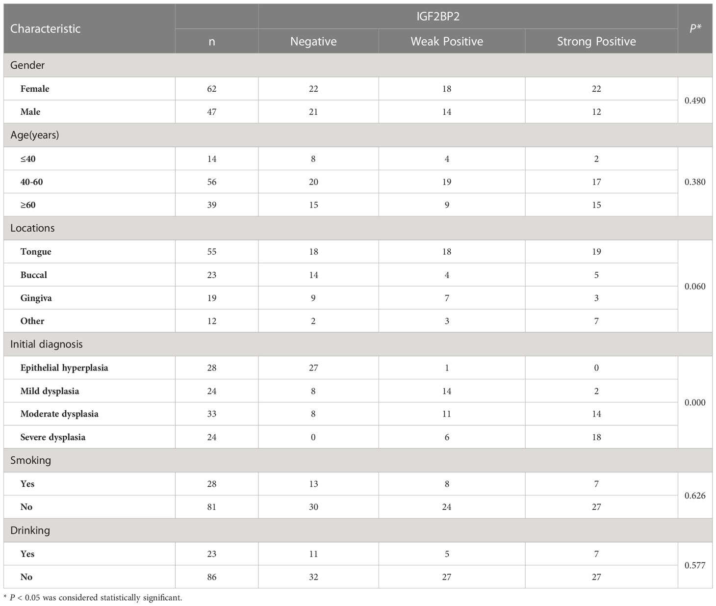 Table 4 Association between the clinicopathological characteristics and IGF2BP2 expression in 109 cases of OSCC and OED.