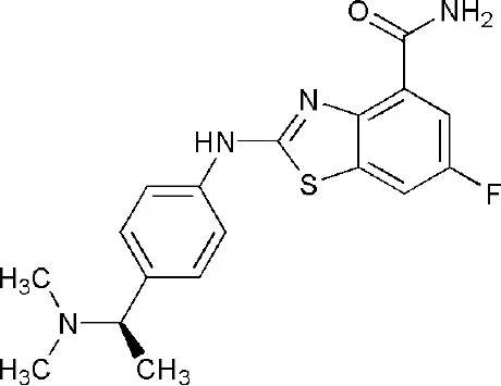 | 4PY4 | 2-({4-[(1R)-1-(dimethylamino)ethyl]phenyl}amino)-6-fluoro-1,3-benzothiazole-4-carboxamide | Catalytic domain | ![]() |