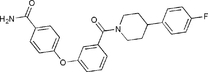 | 6G0W | 4-[3-[4-(4-fluorophenyl)piperidin-1-yl]carbonylphenoxy]benzamide | Catalytic domain | ![]() |