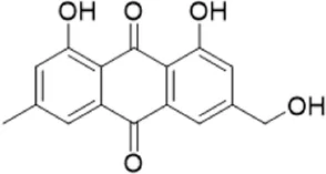 | 14 | Emodin | C15H10O5 | 29.032 | 270.05325 | 271.06076 | [M+H]+ | 229.04991, 225.05487, 201.05585, 197.06047, 169.06615 | ![]() |