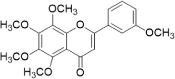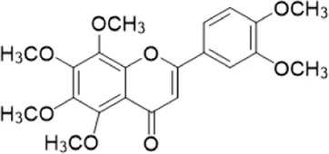 | 18 | Tangeritin | C20H20O7 | 34.856 | 372.12175 | 373.12903 | [M+H]+ | 343.082, 329.10251, 315.08722, 296.06866, 254.05923, 181.01445, 151.03897 | ![]() |