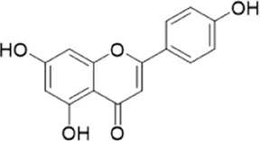 | 22 | Apigenin | C15H10O5 | 39.244 | 270.05314 | 269.04587 | [M-H]− | 241.05096, 225.05565, 181.06563, 135.66243, 120.49317 | ![]() |
