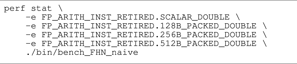 The cell models often involve calls to the exponential function (exp), the logarithmic function (log), and the power function (pow). The expm1 function is also relevant in the context of some numerical schemes that require evaluating ex − 1 where x may be close to zero, in which case exp(x)-1 is prone to rounding errors and expm1(x) produces more accurate results. In the standard C library, these are defined as functions with a scalar input and output, but we need to evaluate these functions on all the elements in a vector simultaneously to achieve SIMD. Fortunately, there are vectorised math libraries that provide C functions that use SIMD instructions to evaluate these math functions for selected vector lengths.