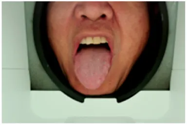 As shown in Figure 2,The acquisition box provides a constant light source to stabilise the tongue image acquisition environment, a customised industrial camera is used to provide high quality images, and the box is designed with a tilted angle to facilitate the presentation of the patient’s tongue. A mandibular rest is also used for the purpose of positioning the tongue.